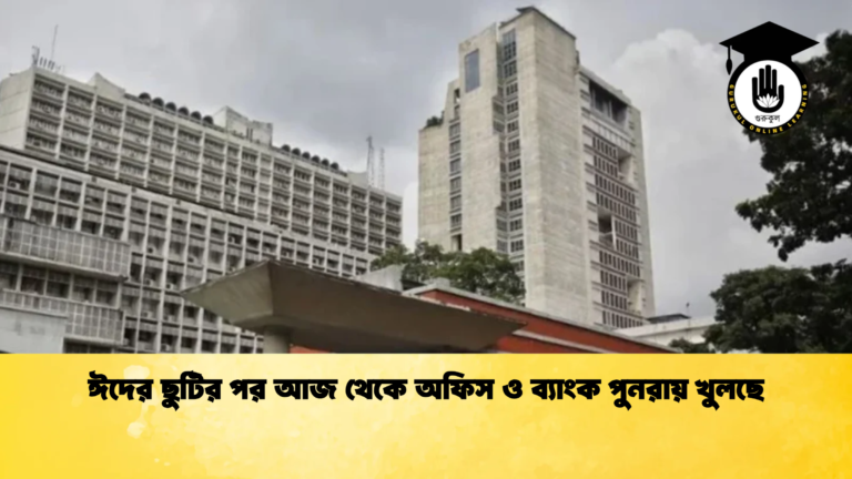সাতদিনের ঈদ-উল-ফিতর ছুটির পর আজ থেকে দেশে সব সরকারি অফিস, ব্যাংক ও বীমা প্রতিষ্ঠান পুনরায় কার্যক্রম শুরু করছে। এ দিন …